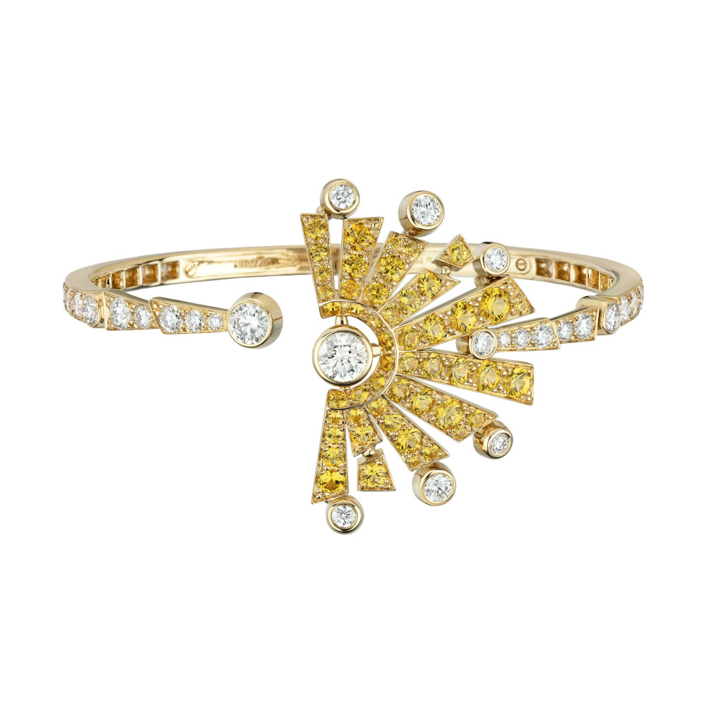 ▲1932高级珠宝系列Soleil Talisman 18K黄金拼钻石及黄色蓝宝石手镯。