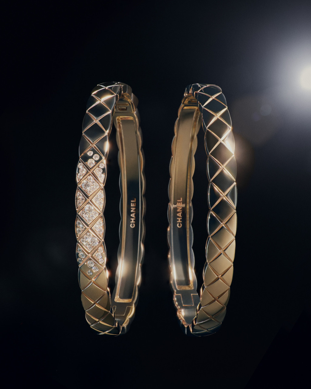 N°5是以Gabrielle Chanel女士最爱的数字“5”为灵感创作。“5”包含很多背后的意义及故事,既是第五个星座,也是Chanel女士的星座:“5”是女士最喜爱的日子,也是她推出高级订制服系列的日子;同样地,“5”是品牌永恒香水的象征。N°5珠宝系列以白金或米色金制作,并镶嵌钻石,包括项链及耳辰,犹如珍贵的幸运之物。Chanel的山茶花不仅是美丽的花朵,更是丰富灵感之源。不论以甚么姿态呈现,是整体的花形线条又或是抽象时尚形态,其充满几何美感的曲线都总幻化成首饰的独特风格。Camelia de Chanel系列以柔和的线条呈现完美的圆形花蕾,运用18K黄金、粉红金拼钻石,高雅而脱俗,简单且纯净。另一个王牌系列则要数到Coco Crush,来自马术世界的菱格纹图案,重现这个1955年面世的品牌象征。系列首饰糅合力量与细腻、简约与层次,刚柔并济,作品经过手工抛光和镶嵌,绽放夺目光采。
