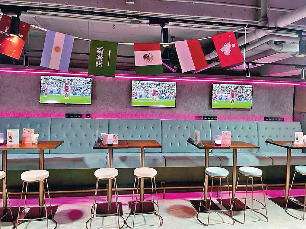 不少人会选择到酒吧观赏赛事,气氛更炽热,酒吧都挂上各国国旗应景。香港酒吧业协会主席钱隽永向本报表示,政府取消营业时间限制后,已有数百间酒吧安装世界杯直播,据他了解,各酒吧都推出不同优惠或宣传吸引客人,有酒吧趁势推出主办国卡塔尔的小食,亦有举办估赛果赢奖品及抽奖活动。