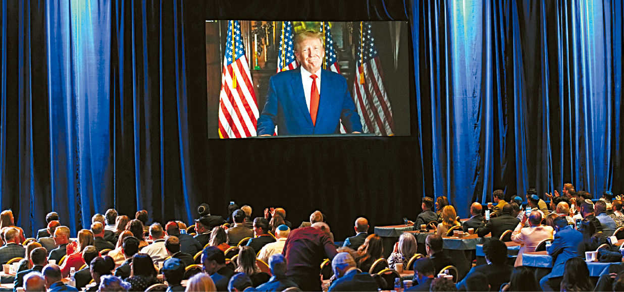 ▲特朗普通过视频联机,参加拉斯韦加斯举行共和党犹太人联盟年度会议上发表讲话。 美联社