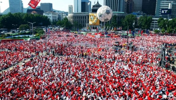虽然韩国足总撤回申请,取消今年的世界杯街头助威活动,韩国红魔拉拉队日前却向首尔市政府提交申请,希望续办这项有二十年传统的打气盛会。
