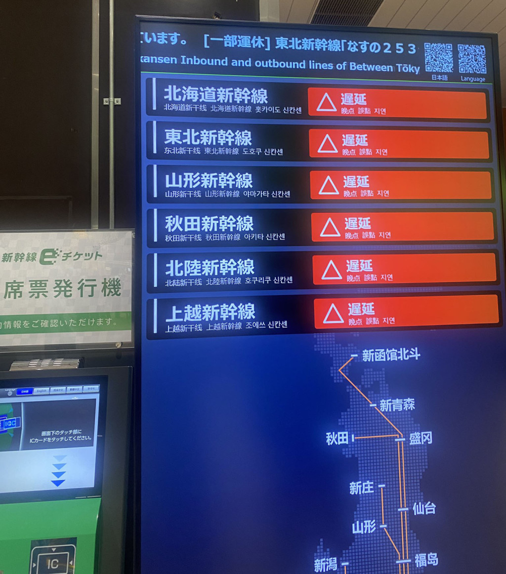 日本新干线向来以准时闻名,惟昨日(22日)却传出有多班新干线延误。据日媒指“东北新干线”一名铁道维修人员于昨日(22日)凌晨进行路轨检查时,突然“人间蒸发”失踪,当局知悉后,随即展开搜查并向警方通报人员失踪,但该名维修人员仍未寻获,事件导致45班新干线发生延误,最长延误时间达70分钟,约2.33万名乘客受到影响。