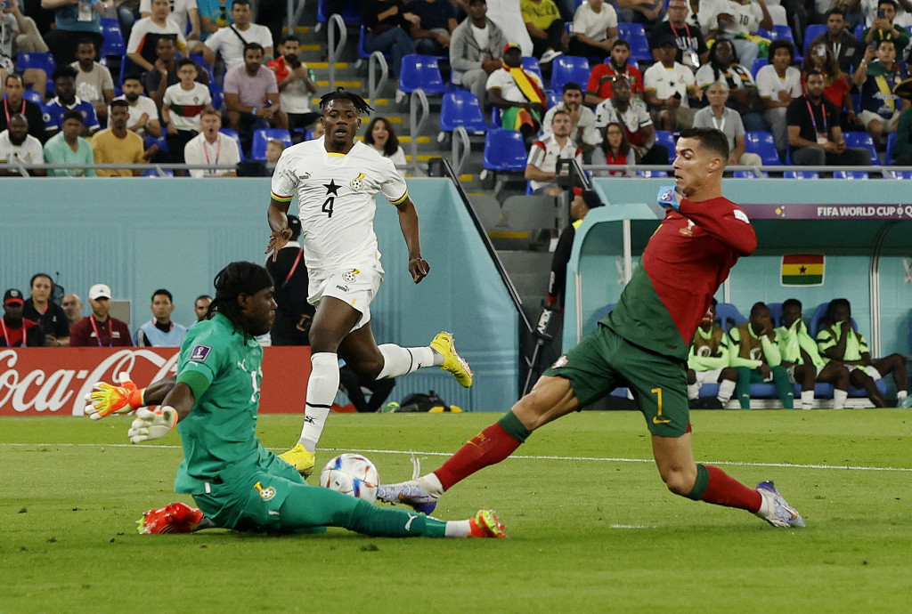 ▲C罗射破加纳门将艾迪斯基十指关,可惜被判诈胡。路透社