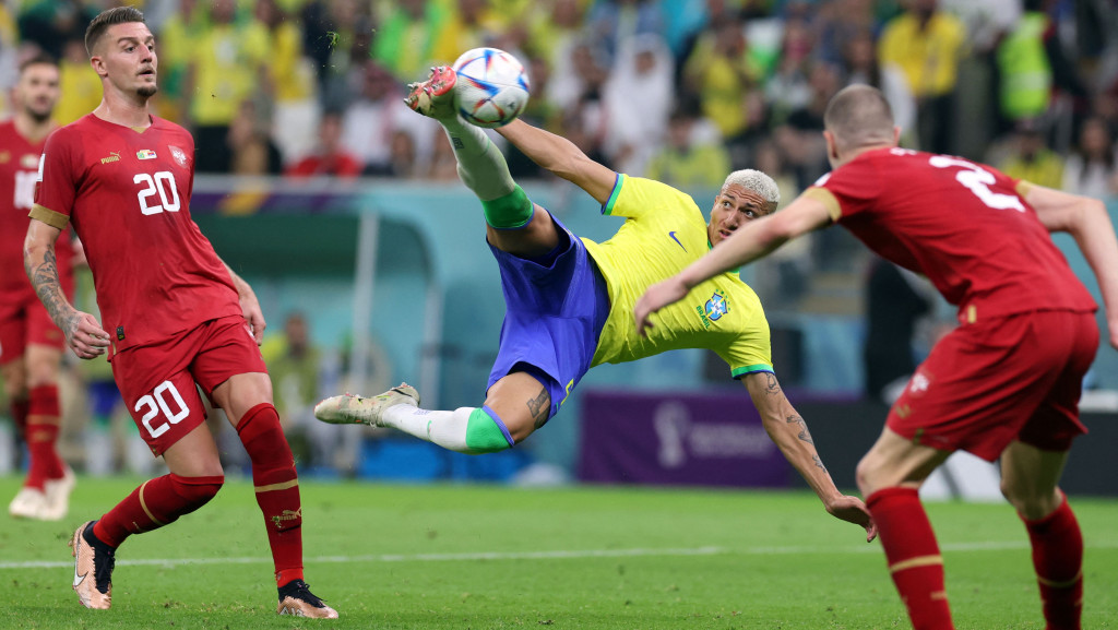 李察利臣今季仍未为热刺在英超士哥,不过转战世界杯舞台,他在一班森巴好队友支援下挥洒自如。62分钟他执鸡入球,73分钟他禁区内接应传中,挑起皮球再凌空半车身窝利射入,这记金球令人拜服,赛后也顺利赢得最佳球员奖。