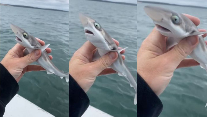 ▲网民海钓捕获“真‧Baby Shark”,瞪眼超萌样令网民融化。