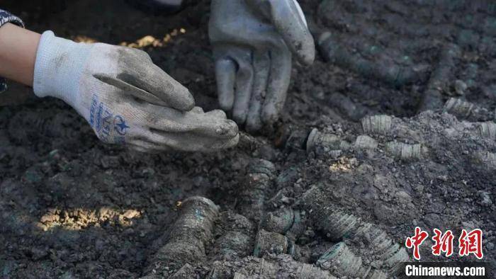 ▲钱币窖藏遗存发掘现场。建湖县文化广电和旅游局