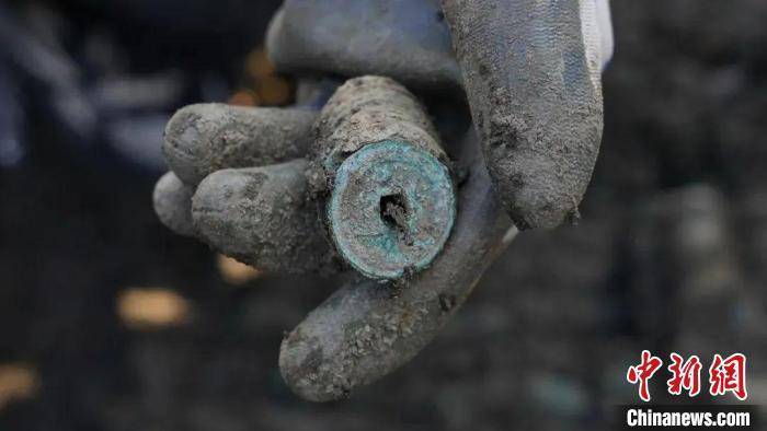 ▲考古工作者展示发掘出的钱币。 建湖县文化广电和旅游局