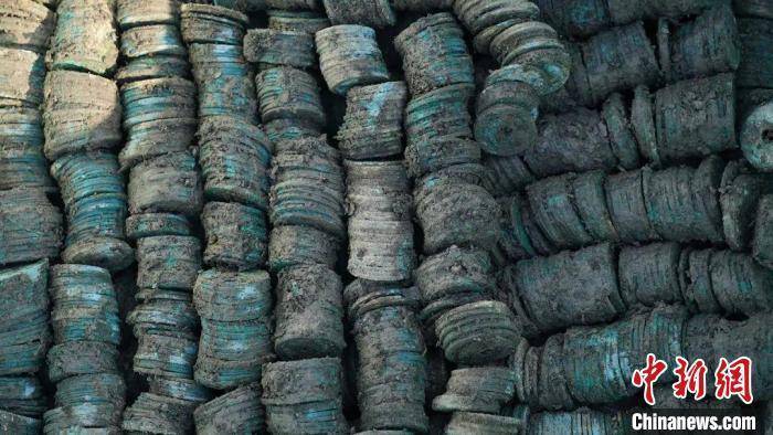 ▲钱币窖藏遗存发掘出的钱币。 建湖县文化广电和旅游局