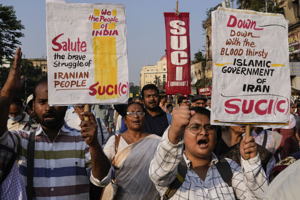 ▲印度加尔各答也有支持伊朗女性维权的示威。美联社