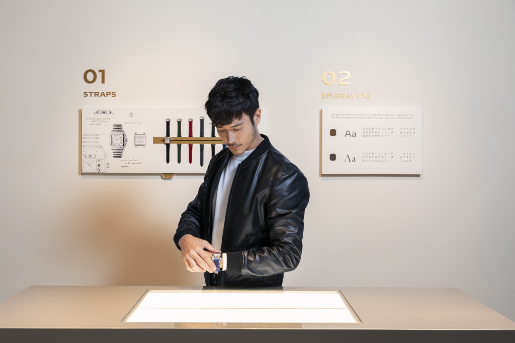 值得驻足细赏的空间, 正因为1904年问世的Santos-Dumont腕表原作,对卡地亚影响深远,是以品牌特别利用独特的影像,透过巨型屏幕以动画讲述Santos腕表系列自诞生以来的传奇历史。多元体验空间则沿时间轨迹走到现代,而压轴就是近年热推的四款经典时计,包括Santos、Tank、Panthère及Ballon Bleu系列的新作品。