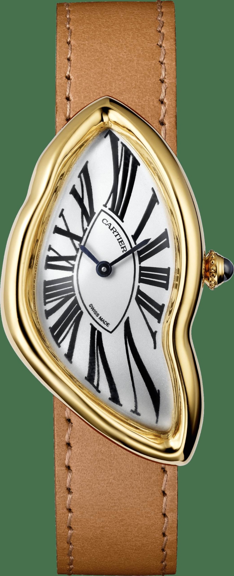 卡地亚Crash腕表,中型款,黄金材质,搭载8971 MC型手动上链机械机芯,配小牛皮表带。(个别定价)