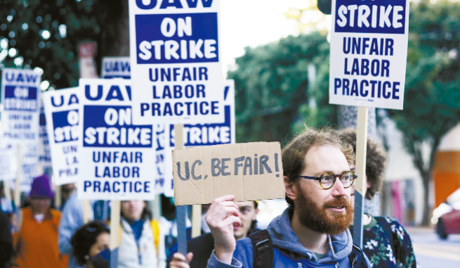 当学生紧张在期末最后数周能否收到成绩之际,1.2万名美国加州大学(UC)学术研究员与博士后研究员在进入罢工第3个星期时,与校方管理层达成初步劳工协议,包括加薪和改善待遇与就业保障,但他们仍团结一致,将与尚未达成劳工协议的学生雇员和学生研究员继续罢工。