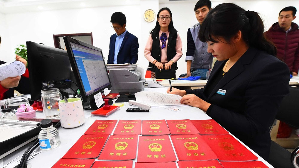 ▲去年初婚人数跌破1200万,创37年来新低。新华社图