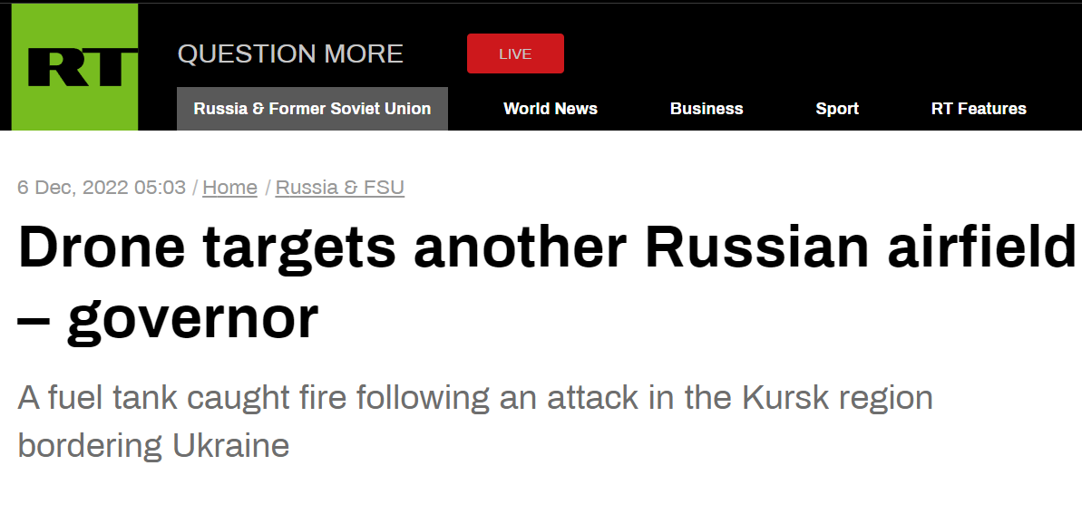 ▲RT:据俄州长消息,有无人机袭击另一座俄罗斯机场。