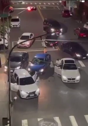 据《中时新闻网》报道,从现场的影片中可见,画面中一辆蓝色车遭其他7辆车包围,一群人持棍棒对车辆的挡风玻璃、车头灯,以及车尾灯猛敲猛打,被敲破的碎片散落一地。之后一群人则上车离开。报道称,影片曝光后,有网民留言说:“光听那声音我就吓死”。
