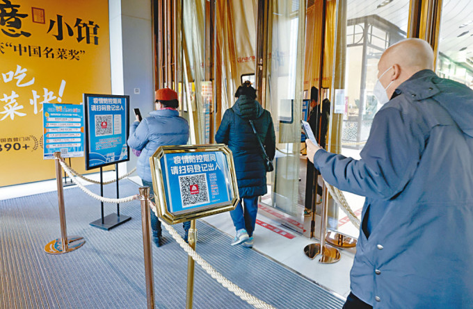 ▲昨天起北京市民进入商场不再查验核酸,扫码进入即可。 中新社