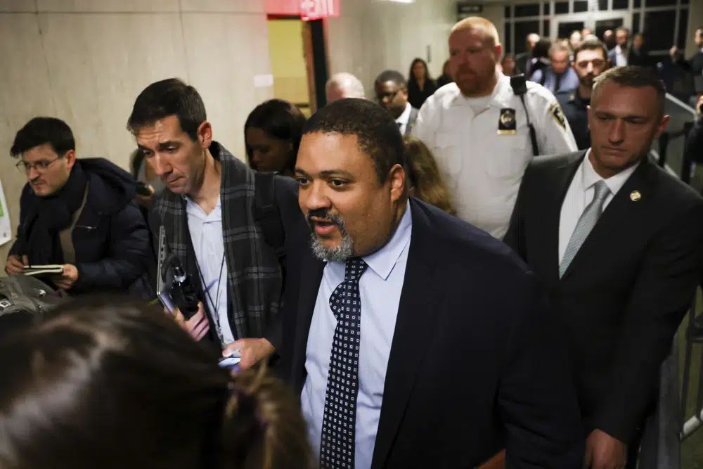▲陪审团裁定特朗普集团在刑事税务欺诈案中的所有罪名成立后,曼哈顿地区检察官布拉格离开法庭。AP