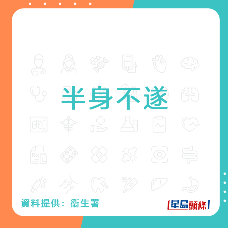 根据香港卫生署资料显示,“中风”是由于脑部血管阻塞或爆裂,令脑组织不能得到充足的养份和氧气,受影响的神经细胞因而坏死,产生各种神经症状。