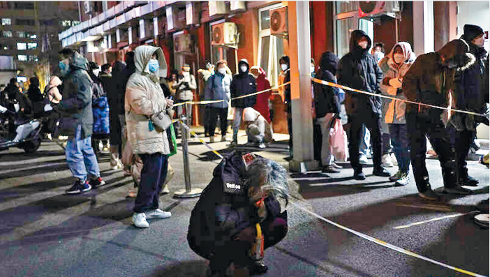 ▲北京夜晚最低零下六度,民众在北京朝阳医院大排长龙。