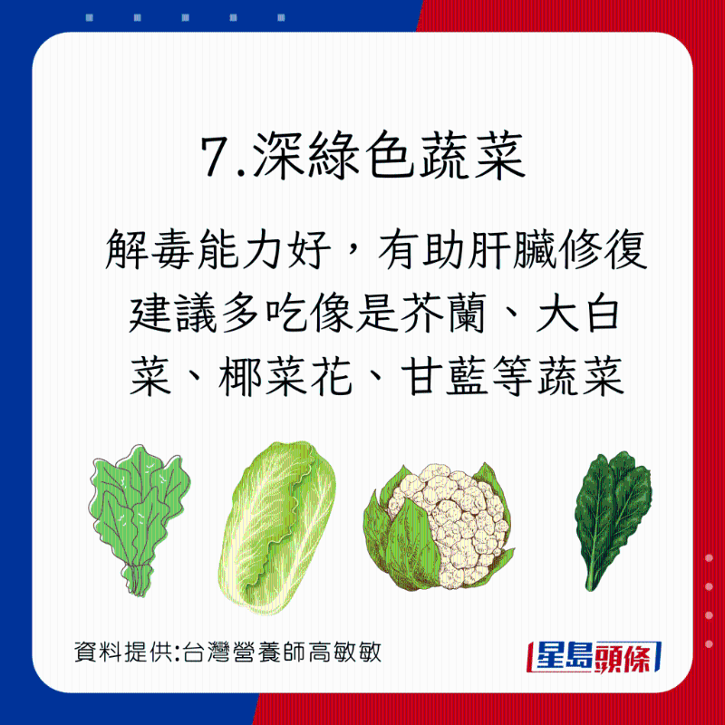营养师高敏敏列出15种食物养肝排毒,并列出各种食物对肝脏的功用,可以为肝脏大扫除: