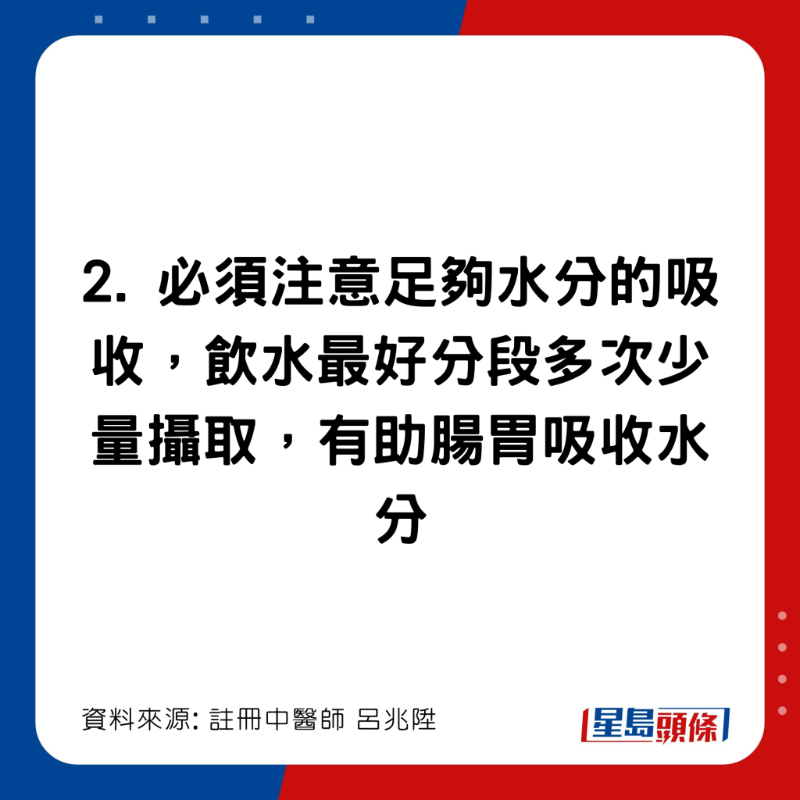 最后,营养师高敏敏提醒,若有熬夜习惯,补充水分很重要,因为有足够的水分才能使身体健康运作和有精神,更可以帮助细胞修复、修复疲劳和远离恶梦。 但她也指熬夜非常伤身,还是建议保持良好睡眠习惯。