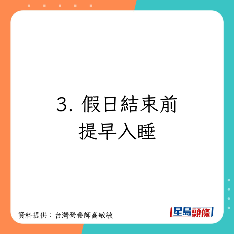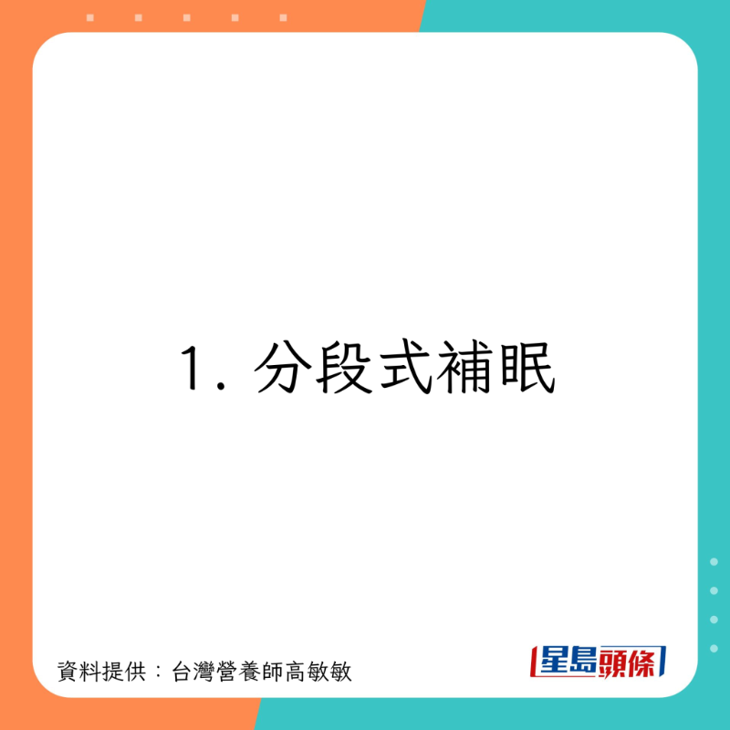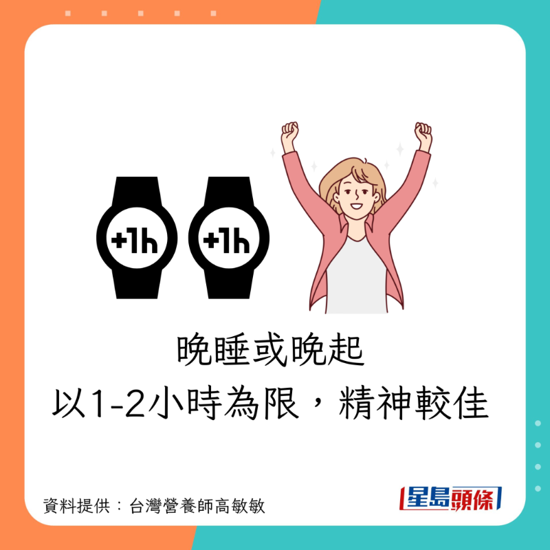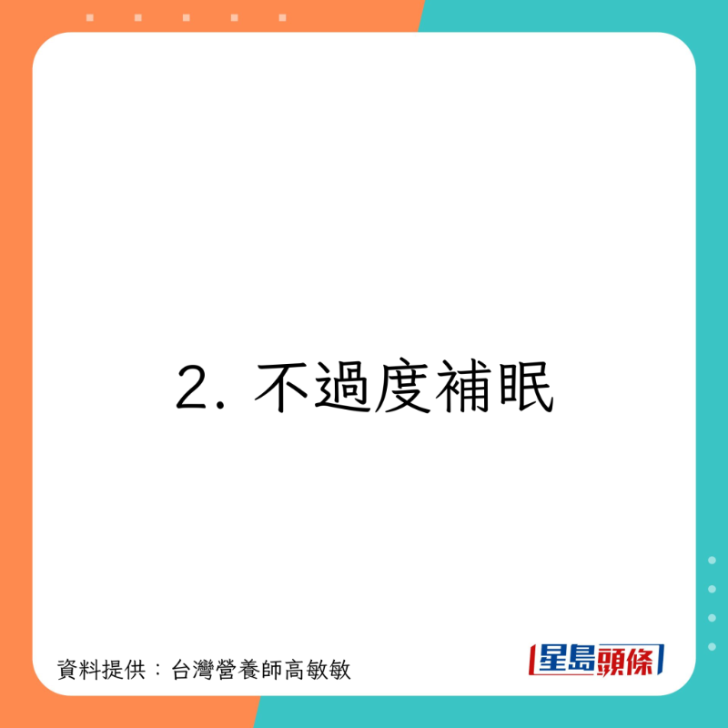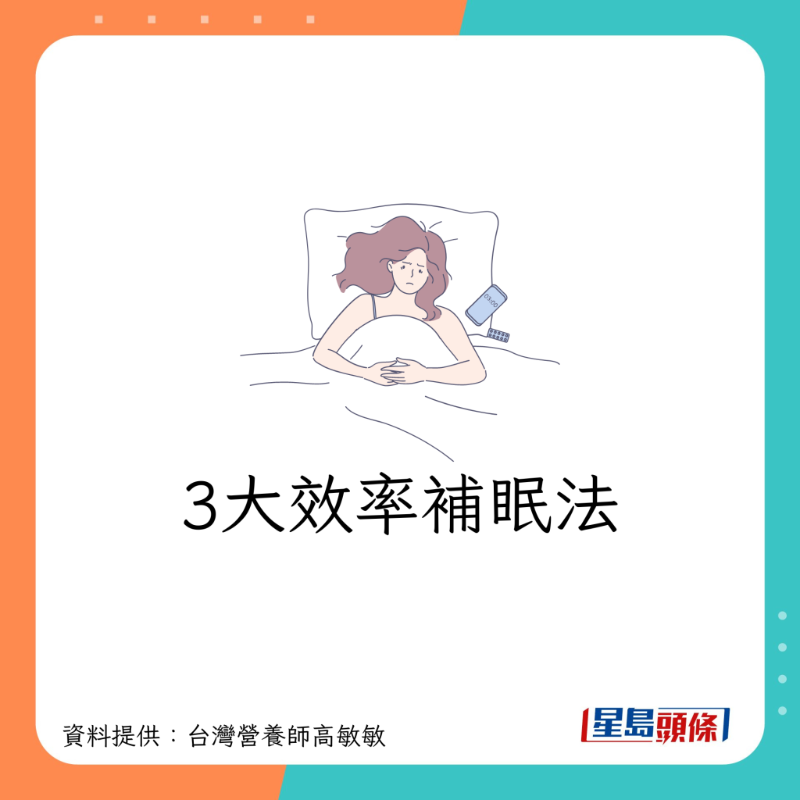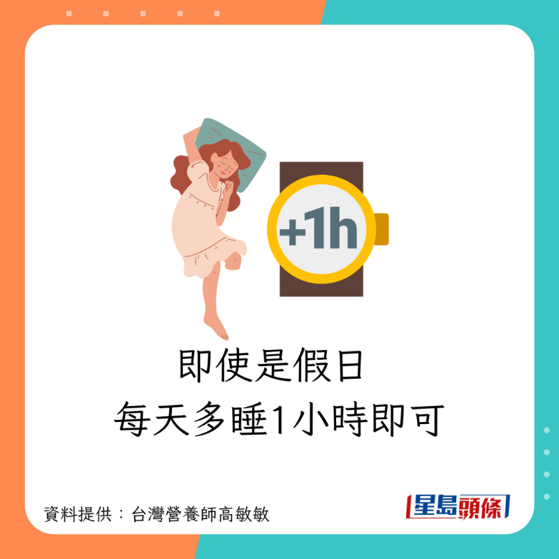 营养师高敏敏指出,补眠并不是愈长愈好,可能反令自己更累。若想要一个有效率的补眠,她有以下建议: