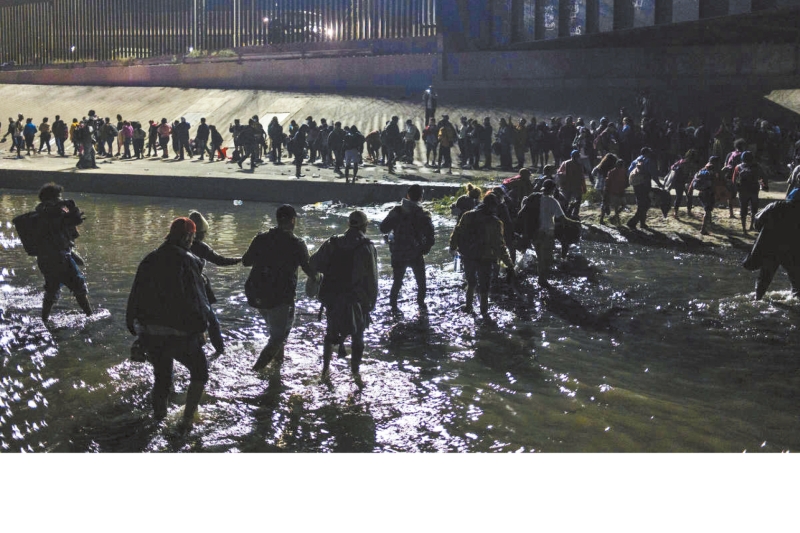 ▲图为一大群大部分来自尼加拉瓜的移民,越过墨西哥华雷斯城的边境,进入美国边境,并在德州埃尔帕索申请庇护。 纽约时报图片
