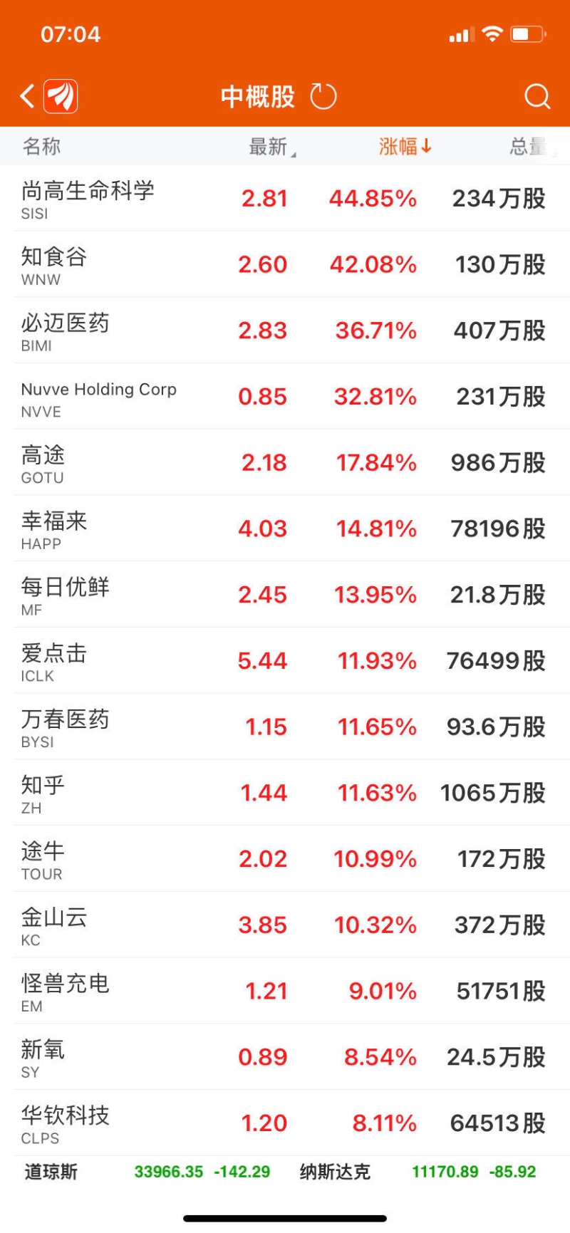 热门中概股涨跌不一,纳斯达克中国金龙指数涨0.50%。每日优鲜涨近14%,网易涨超4%,富途控股、哔哩哔哩涨超2%,腾讯音乐、拼多多、京东涨超1%,唯品会、百度小幅上涨。爱奇艺跌超5%,满帮、蔚来、小鹏汽车跌超1%,阿里巴巴、微博、理想汽车小幅下跌。