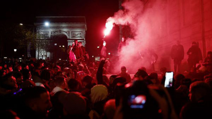 在人头涌涌的巴黎香榭丽舍大街,人们放起烟花和红色信号弹庆祝,沿途汽车不断响咹呼应,当局出动逾2000名防暴警察戒备。无论是巴黎还是摩洛哥首都拉巴特,酒吧里都挤满两队球队的支持者。有人称这是法语人士的胜利。