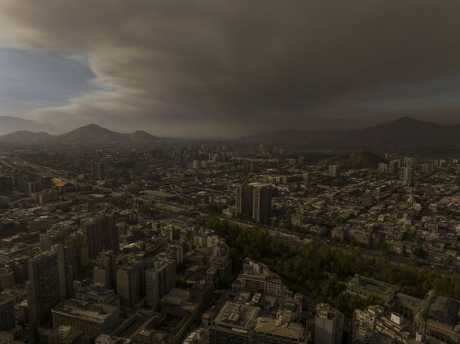 ▲智利首都在热浪中被森林大火产生的烟雾呛到。