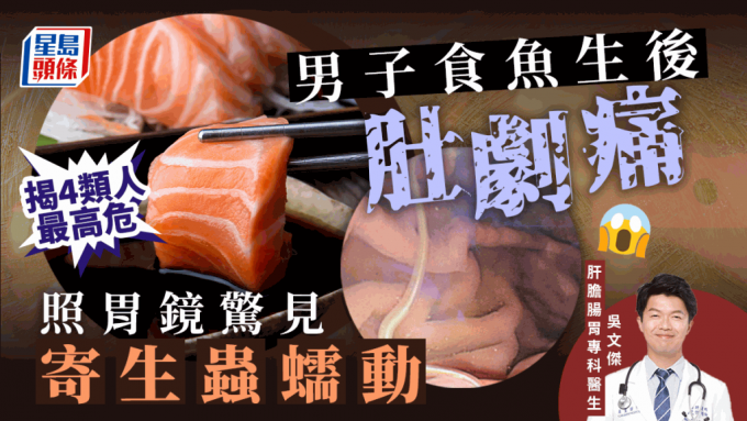 香港人最爱吃日式刺身,不过如果进食处理不当的鱼生,随时误吞寄生虫。 有医生分享案例,近日一名男子进食鱼生后求医,经检查后竟发现胃壁内有一条寄生虫在蠕动,且险钻入血管中,令人极为震惊。
