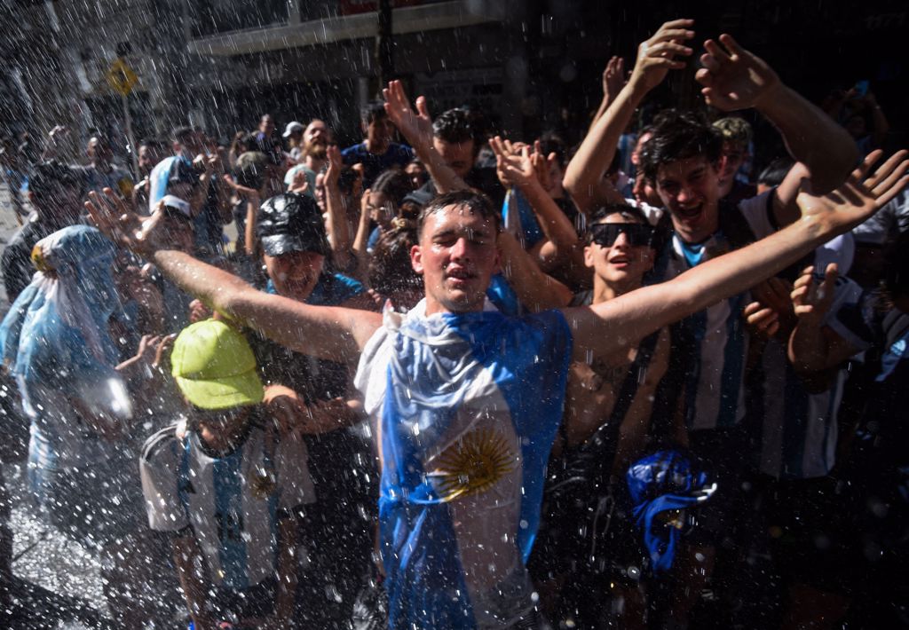 综合外媒报导,阿根廷首都布宜诺斯艾利斯宛如大型嘉年华,这几天彻夜等待英雄凯旋归国,当局更宣布球员抵达当天为国定假日,数百万人挤满大街小巷狂欢,场面相当壮观,不过人多意外事故频传,有球迷在狂欢时乐极生悲,不幸被披戴在身上的国旗勒死。
