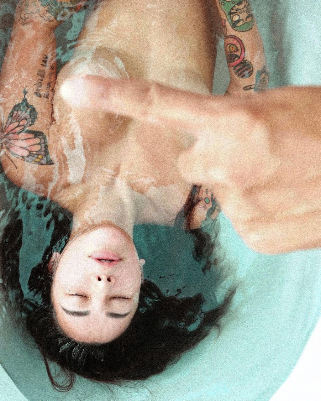 ▲近日她更在社交媒体上分享一张全裸的出浴照。