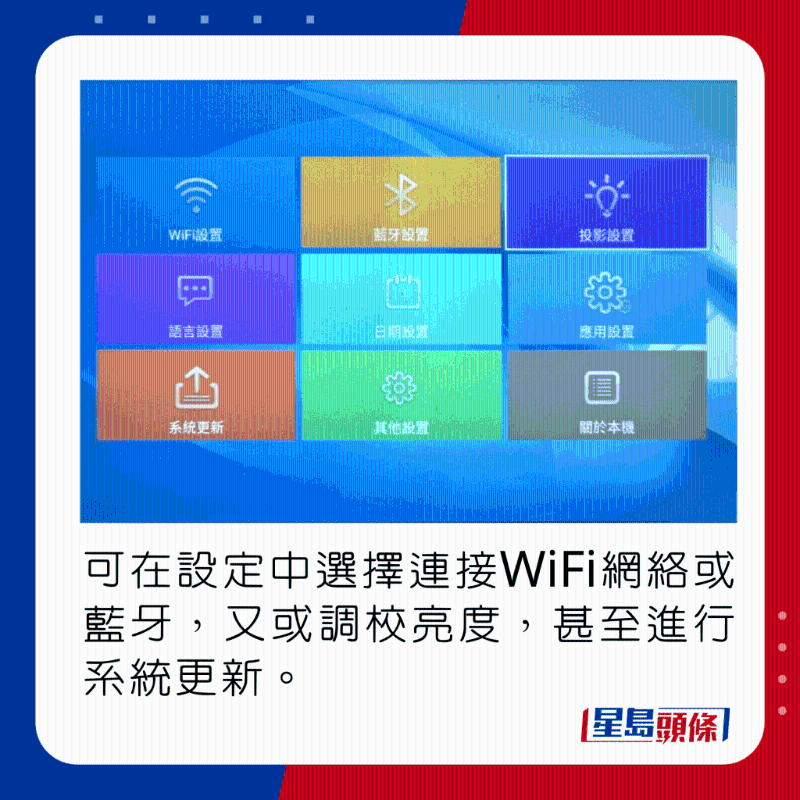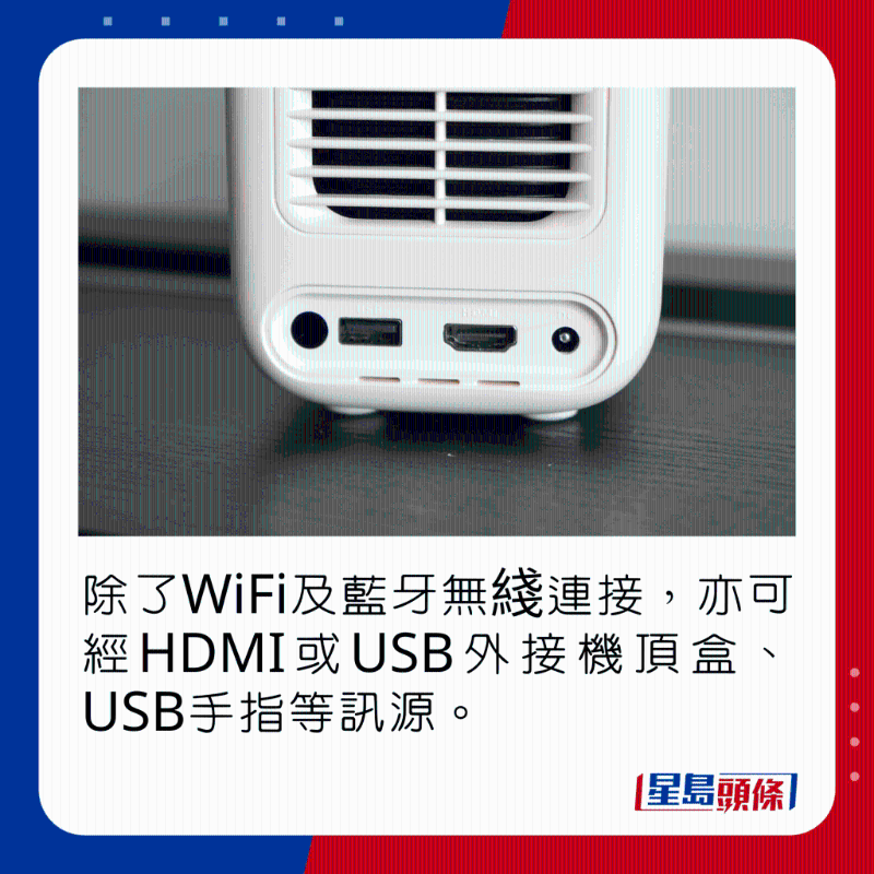 拥有1,080p全高清解像度及250流明亮度,若嫌内置喇叭不够响亮,可经蓝牙外接无线喇叭。