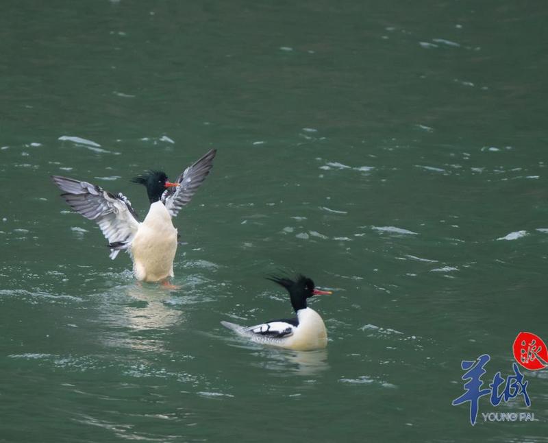 ▲中华秋沙鸭“现身”乐昌市武江河段。