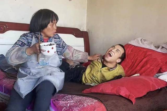 “母亲一步步摸索着笑意不减,将整个猪头烧毛、清洗、煮熟、切盘,儿子在床上手舞足蹈,开心地等待着,一家人都高兴坏了……”近日,一则“盲人母亲给脑瘫儿子做猪头肉”的视频登上热搜,让网友们看得“既感动又难过”。视频中的母亲叫曹仕美,生活在贵州纳雍的大山深处,从小眼盲,生活困苦,却几十年如一日地照顾患有重度脑瘫的儿子,一日三餐一口一口地嚼碎喂食,克服常人无法想象的艰难,将儿子抚养长大。