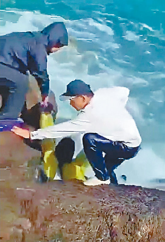 该影片前日在facebook群组“香港行山远足之友”上载,帖文称有人于行山时“行近岸边影相跌咗落海”。影片见一名身穿荧光黄色外套的女子在海面载浮载沉,岸边两名男子以鱼竿,慢慢将把女子拉回近岸位置。一名身穿白色上衣的男子其后踏进水中,尝试将女子拉上岸,其间有人建议“捉佢(女子)头发”,一把女声则在镜头外高叫“我个心卜卜跳”,又不禁说“如果唔系个鱼钩勾到佢,真系死硬喎”。