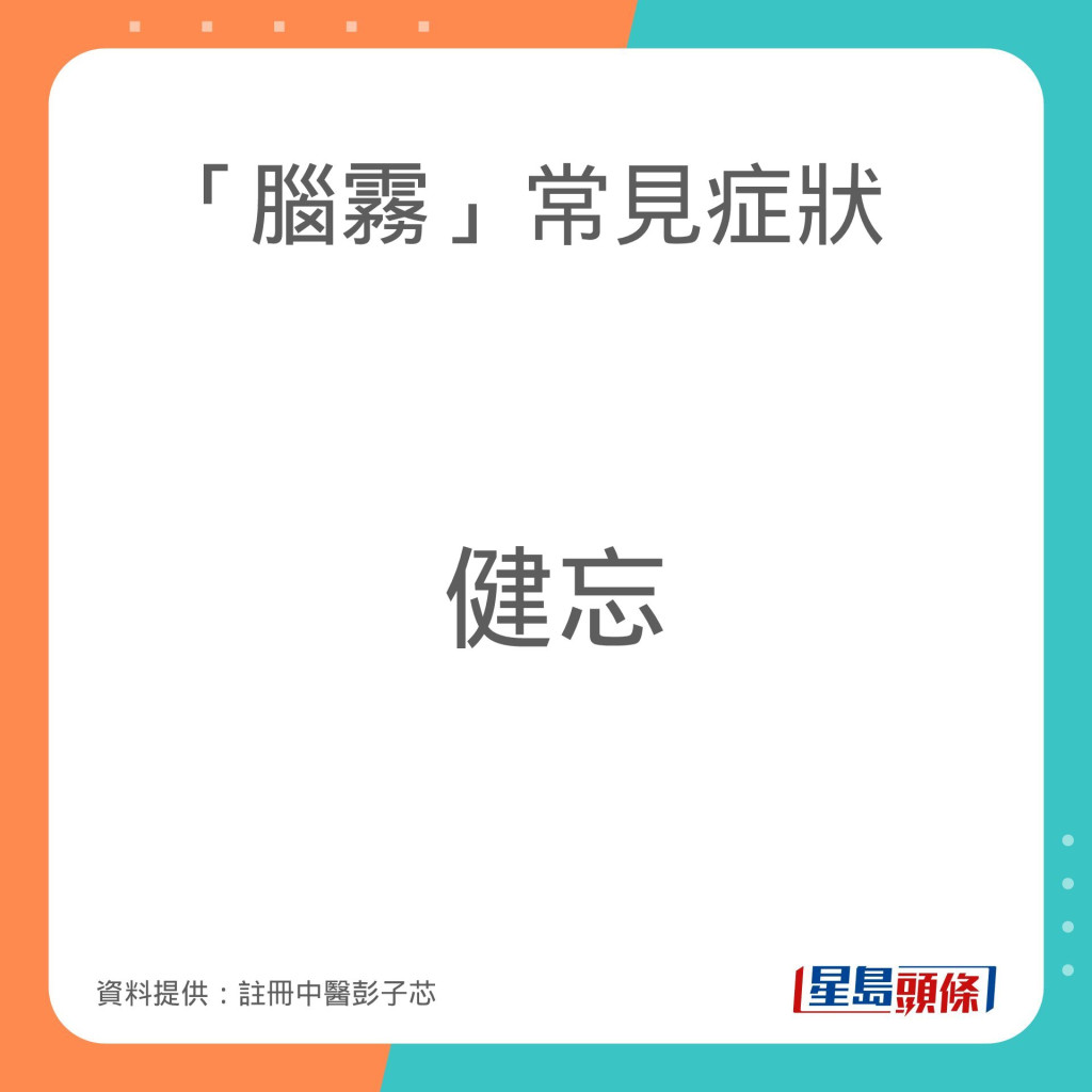脑雾,泛指出现以下8个与精神及思维能力方面常见的症状: