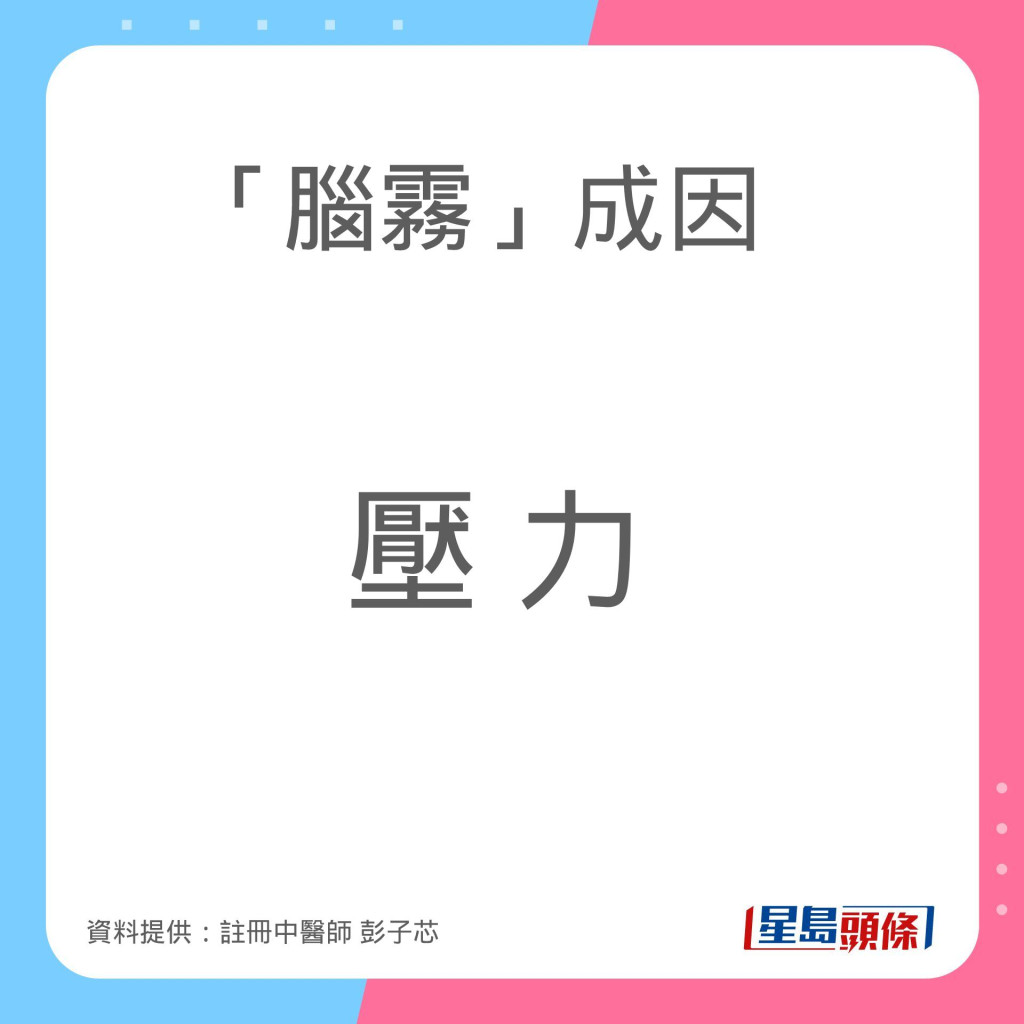 彭医师续指,新冠肺炎只是引起脑雾的原因之一,还有以下6个常见成因: