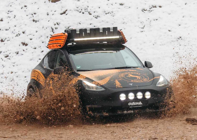 近期超跑车生产商保时捷及林宝坚尼为满足车迷对爬山越野的新要求,纷纷推出具备全天候能力的高性能新车款;若然你经已拥有一辆Tesla Model Y电动车,又钟情越野,可以看看这款由德国Delta4x4汽车改装公司,专门为Model Y度身订造的一系列越野升级改装件,当中包括增高35mm的越野悬挂套件,配合新款20吋哑黑色合金轮圈、德国马牌CrossContact ATR专属越野轮胎,可以令离地距大幅增加220mm,以便攀爬崎岖不平的山路需要,再配衬上向外扩展60mm的抛沙板轮眉、车首外挂四盏PIAA LED越野探射灯,还有度身订造的轻合金车顶行李架,以及一系列越野车装备,演译出Model Y另一面越野四驱车本色。整套Model Y越野升级改装件售价约为12万港元起,并可以分拆购买。