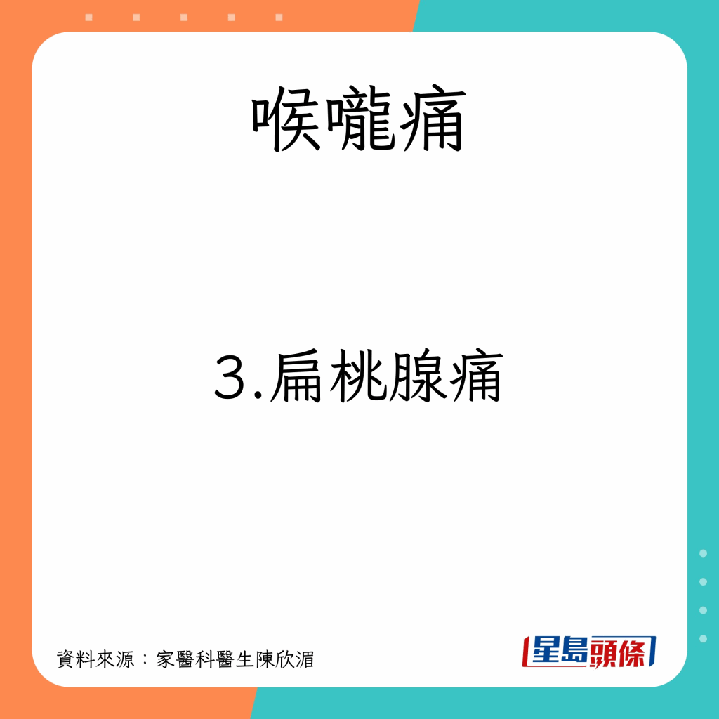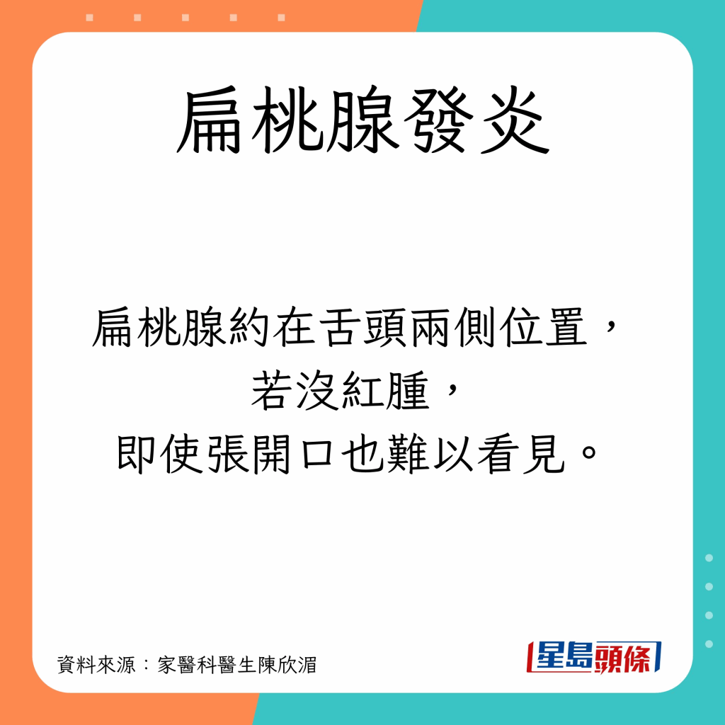 家医科医生陈欣湄指,喉咙痛主要分3类并讲解何谓扁桃腺发炎。