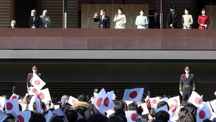 皇室主要成员会站在皇宫长和殿的阳台接受民众贺年。今天首场参贺活动,皇室主要成员17人当中有15人出席,包括上皇明仁夫妇以及日皇德仁一家三口,其中爱子公主是历来首次出席。而悠仁亲王则因尚未成年,没有在大众面前出现。