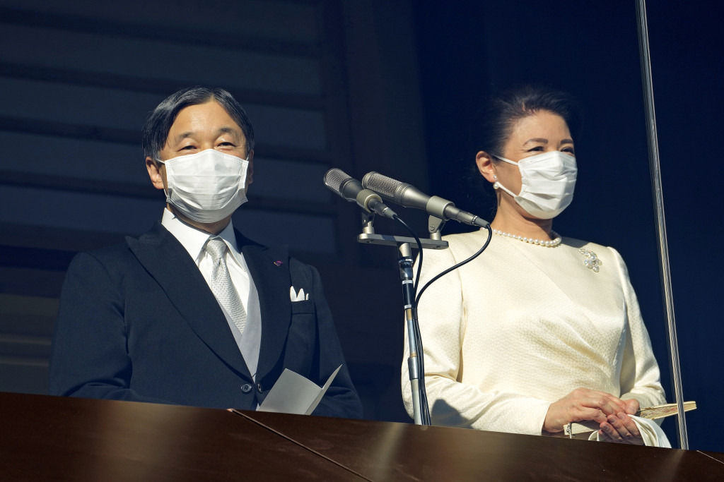 ▲日本德仁天皇与雅子皇后在东京皇宫阳台上向民众发表讲话。AP