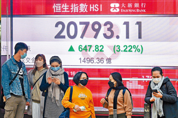 港股自今年首个交易日迎来“开门红”后再下一城,恒指昨日更以全日高位收市,收报20793点,升647点,创逾5个月高位,亦是自2021年7月以来首次收复俗称“牛熊分界线”的250天线(20369),恒指对上一次升穿250天线,已是2020年11月5日,成交金额1496亿元,2日累升逾千点。科网股表现强势,单是阿里巴巴(9988)便贡献143点。分析指,市场有牛市气氛,加上大市成交配合,预料恒指后市有机会上试22000点。