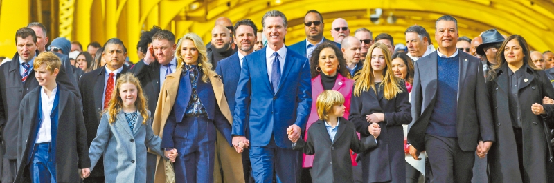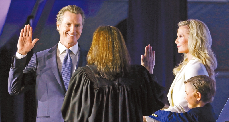 早于周一(2日)展开第二个任期的州长纽森周五(6日)进行户外就职仪式。他发表就职演说时,将个人领导风格不点名与共和党前总统特朗普比较。但纽森甫展开第二任期即遇上财政赤字,还要努力解决无家可归和高油价等民生关注议题。