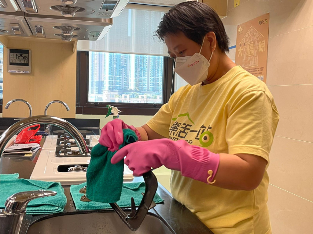 阿珠表示,清洁过程最紧要做到“眼到、手到、心到”,即是入屋后先找出污糟的地方;尝试运用不同的清洁工具和用品;以及需要和雇主有良好沟通,讲清楚工作的重点。她指出,柜桶底最容易被忽略,她会特别提醒雇主是否需要抹。