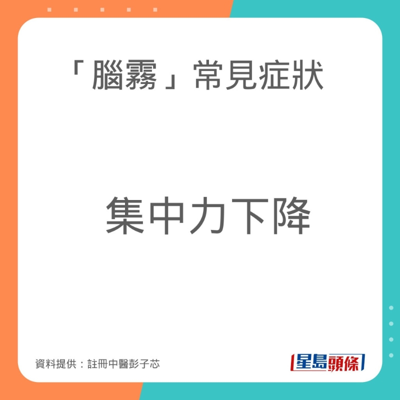 脑雾,泛指出现以下8个与精神及思维能力方面常见的症状: