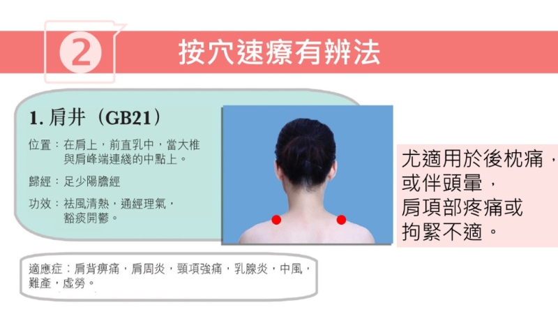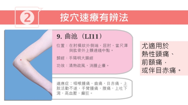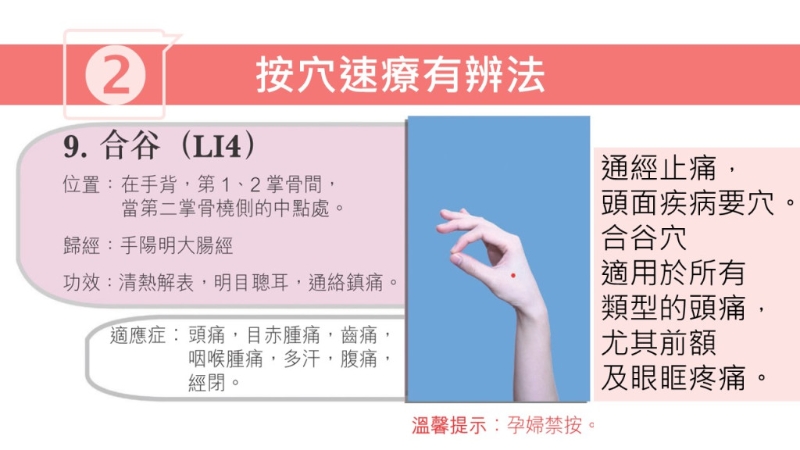 ▲按穴位止头痛方法(图片获注册中医师林家扬授权转载)