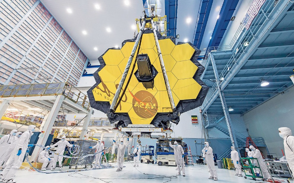▲NASA的韦伯太空望远镜光学组件的主镜由18片六角形镜片组成。 网络图片