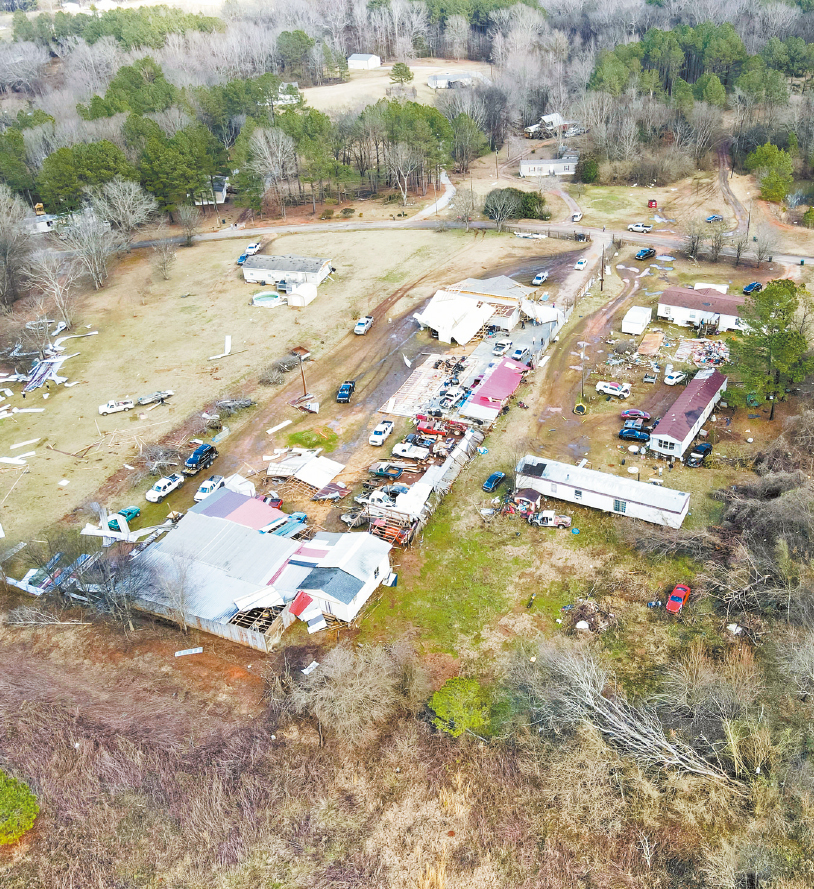 12日下午,一场巨大的龙卷风席卷了与奥陶加县相距40哩左右的塞尔玛市(Selma)。 国家气象局(NWS)气象学家德萨特怀特(Gerald Satterwhite)表示,龙卷风在地面移动了至少50哩,并在全州的7个县造成了破坏,碎片残骇被卷到大约1万至1.5万呎高的高空。